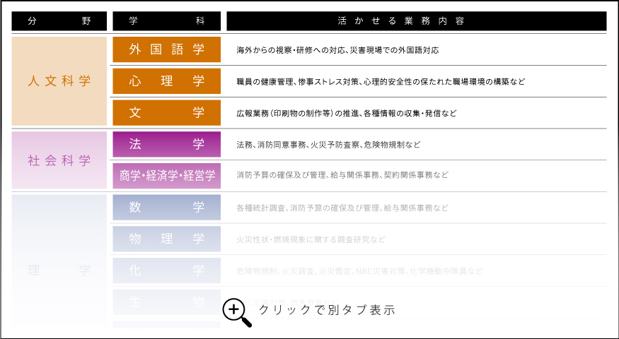 東京消防庁には多種多様な業務があり、そこで活かせる知識や経験、個性もさまざまです。