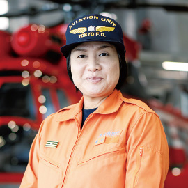 航空整備士としてヘリコプターの点検や整備を行うほか、災害発生時にはヘリコプターに乗り出場します。東京消防庁は様々な職種があり、男女を問わず全ての職種が開かれているため、女性でも努力し挑戦することができます。